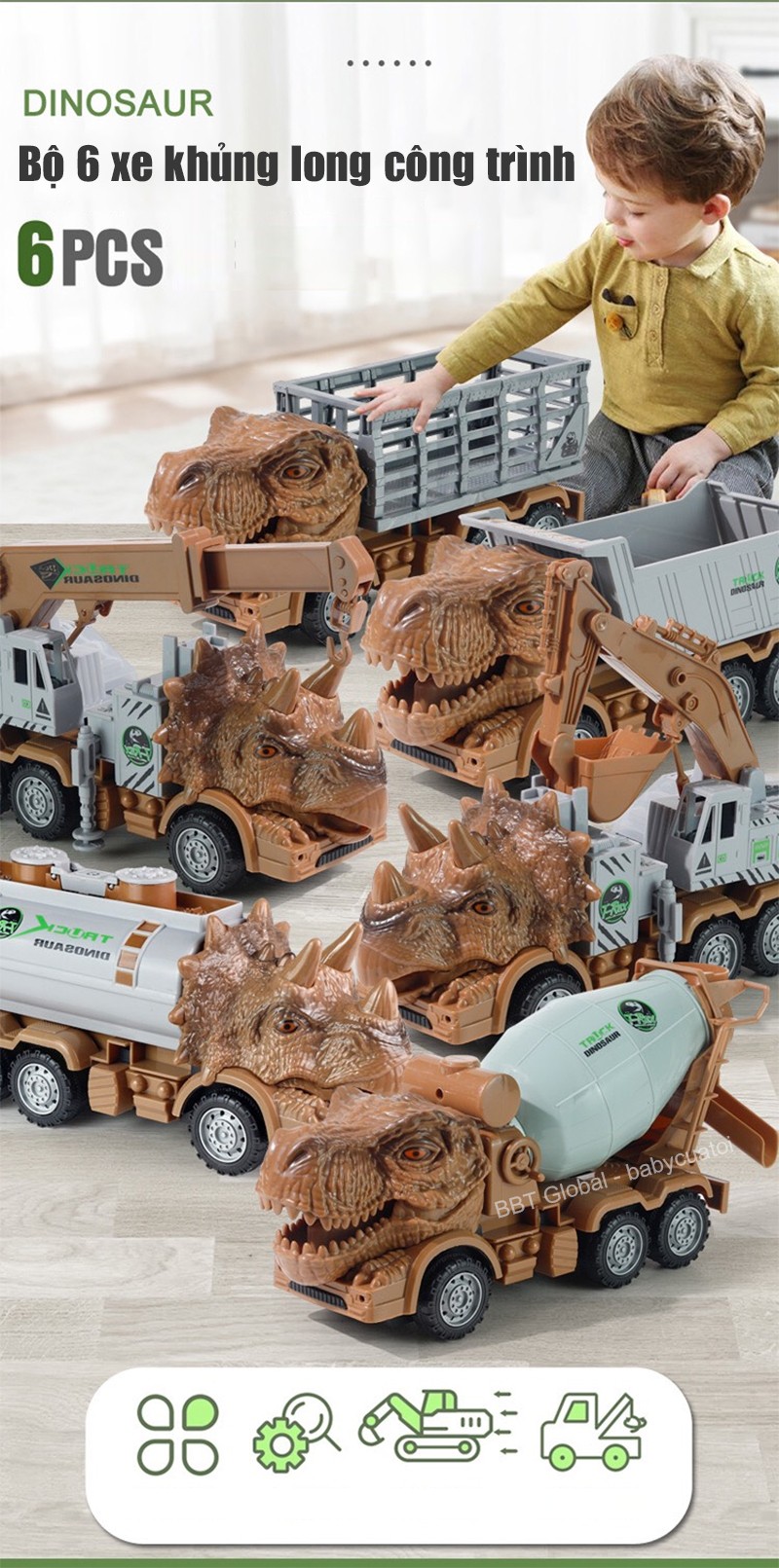 - Combo 6 xe công trình mô hình khủng long SIÊU HOT, các bé trai cực mê