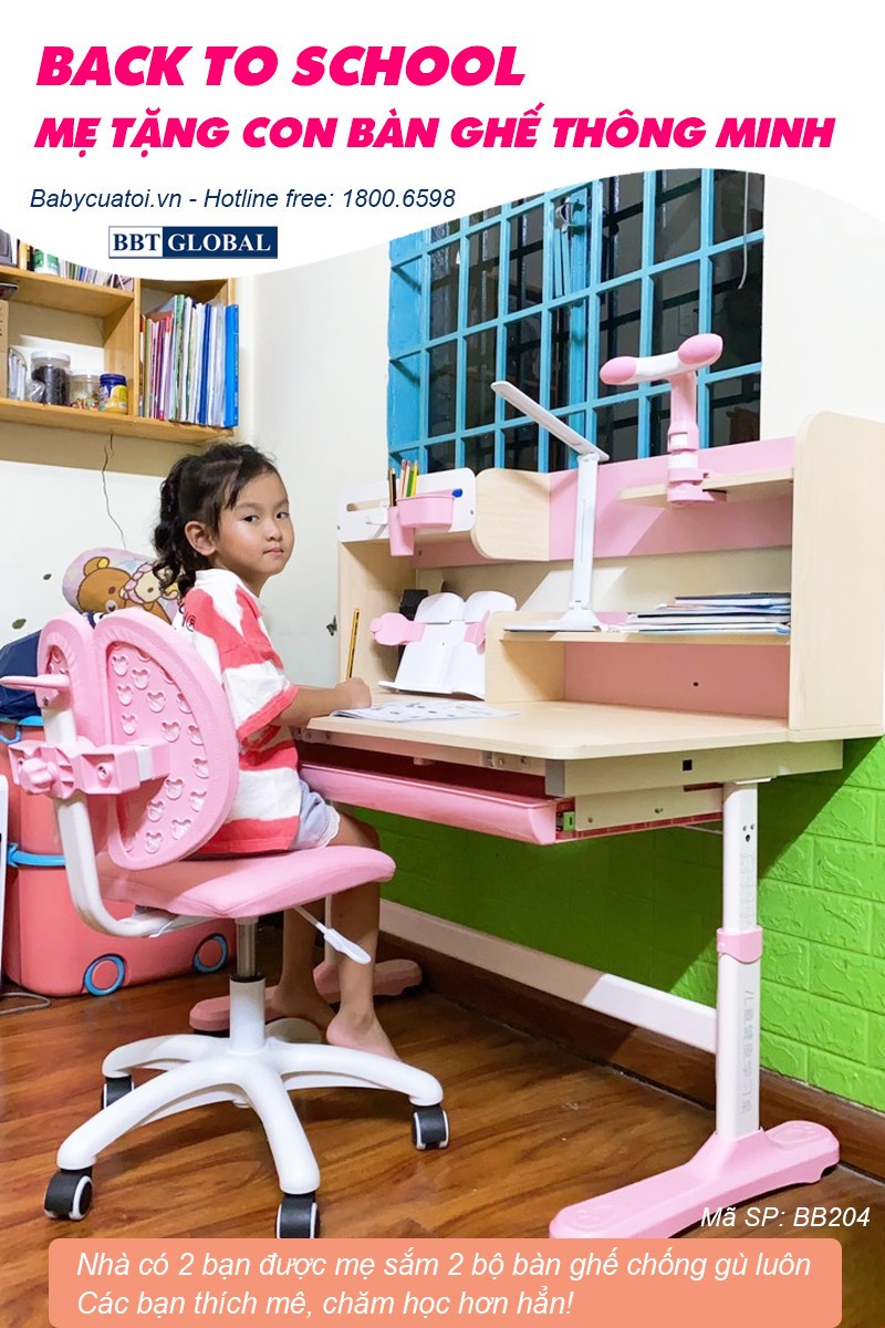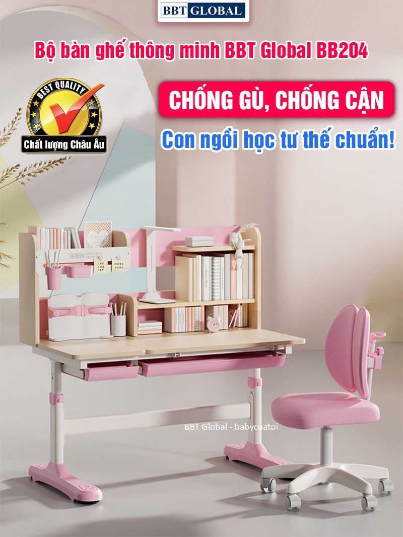 Bộ bàn ghế chống gù chống cận BBT Global hồng BB204-H