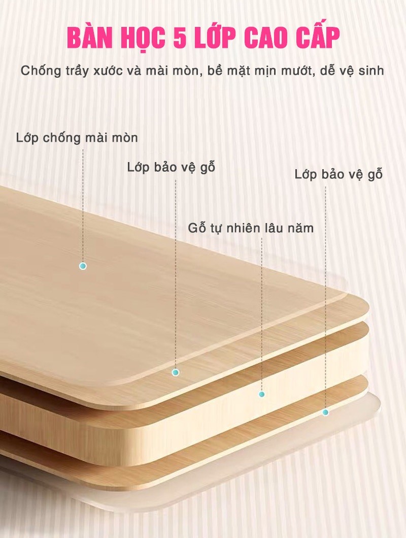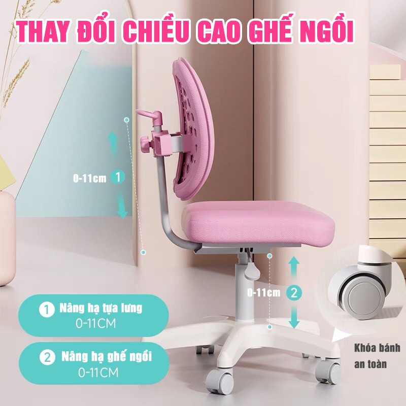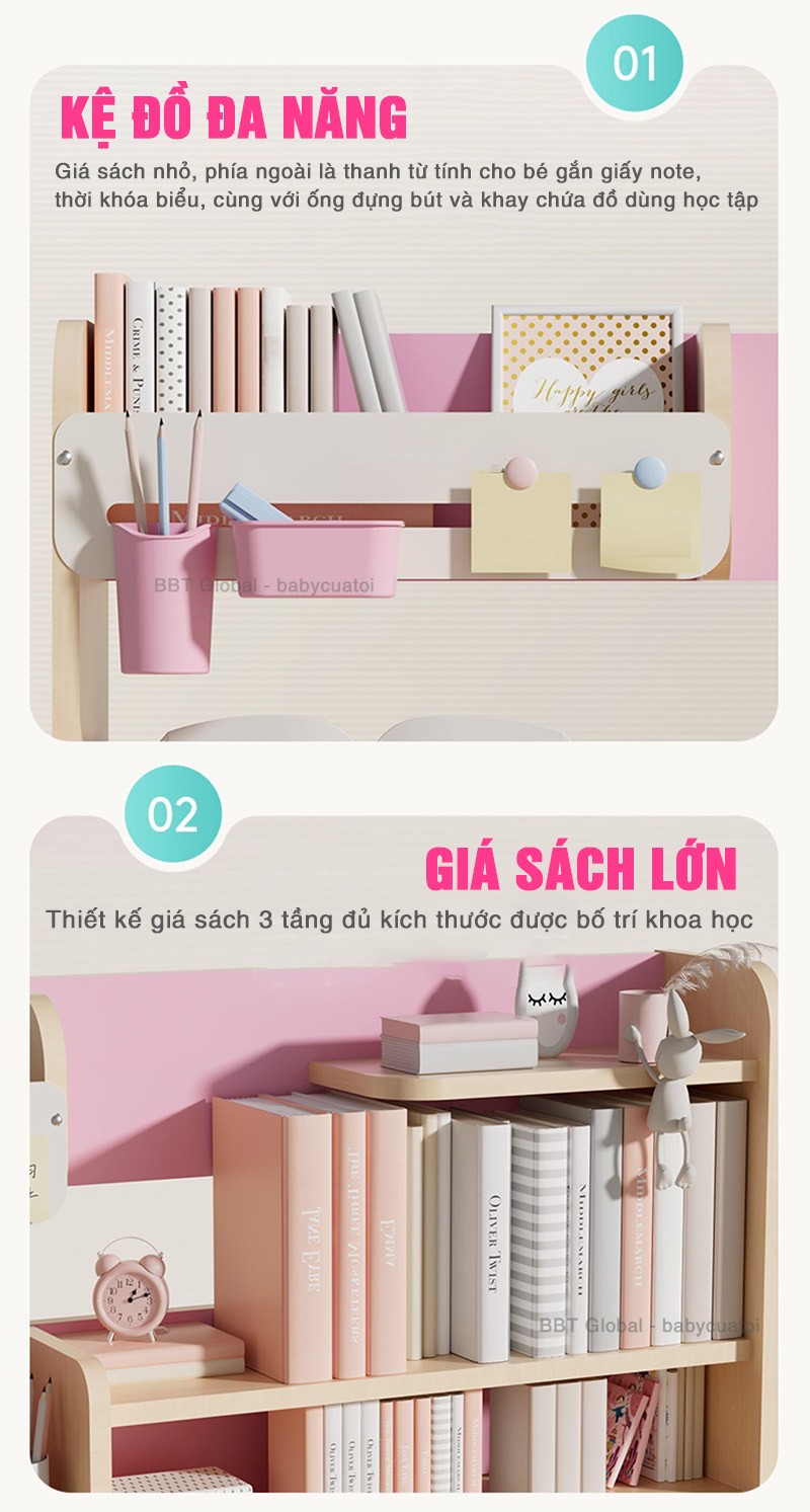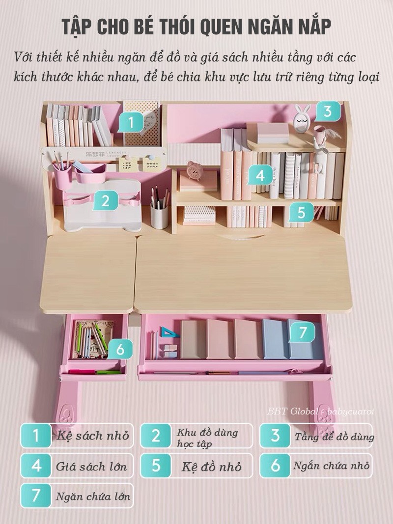 - Thương hiệu: BBT Global - Kích thước bàn: dài 110cm, rộng 59 cm, cao 95-118cm - Kích thước ghế ngồi: 35*35*70-82cm - Độ tuổi sử dụng: 3-18 tuổi - Bảo hành: 5 năm, 1 đổi 1 trong 100 ngày nếu có lỗi sản xuất - Màu sắc: hồng - Mặt bàn phủ Matte giúp tản sáng, chống lóa, chống xước, chống thấm nước và chống bám bẩn - Ghế ngồi cao cấp nâng đỡ cột sống, điều chỉnh kích thước theo 3 chiều, tự do thay đổi theo ý muốn - Ghế ngồi khóa trọng lực an toàn, bé chỉ cần ngồi lên ghế sẽ tự động khóa bánh xe tránh trơn trượt - Ghế ngồi thông minh chống gù, chống cận còn giúp trẻ thư giãn ngay cả khi học bài, giảm căng thẳng mệt mỏi, trẻ minh mẫn và tập trung học bài hiệu quả hơn.