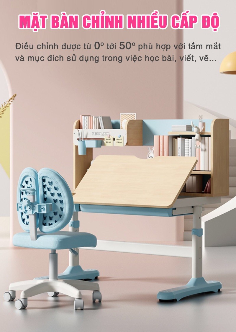 Bộ bàn ghế chống gù này rất đẹp nhé, thay đổi chiều cao rất tiện lợi, màu sắc lại nổi bất rất bát mắt. Mình rất hài lòng.