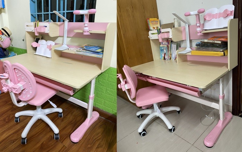 Sắm 2 bộ bàn học chống gù này cho 2 con, đẹp lắm. Ghế lại có thể thay đổi chiều cao rất phụ hợp với các con ngồi thoải mái.