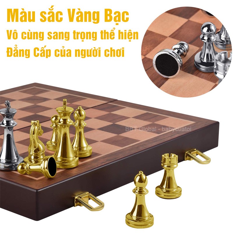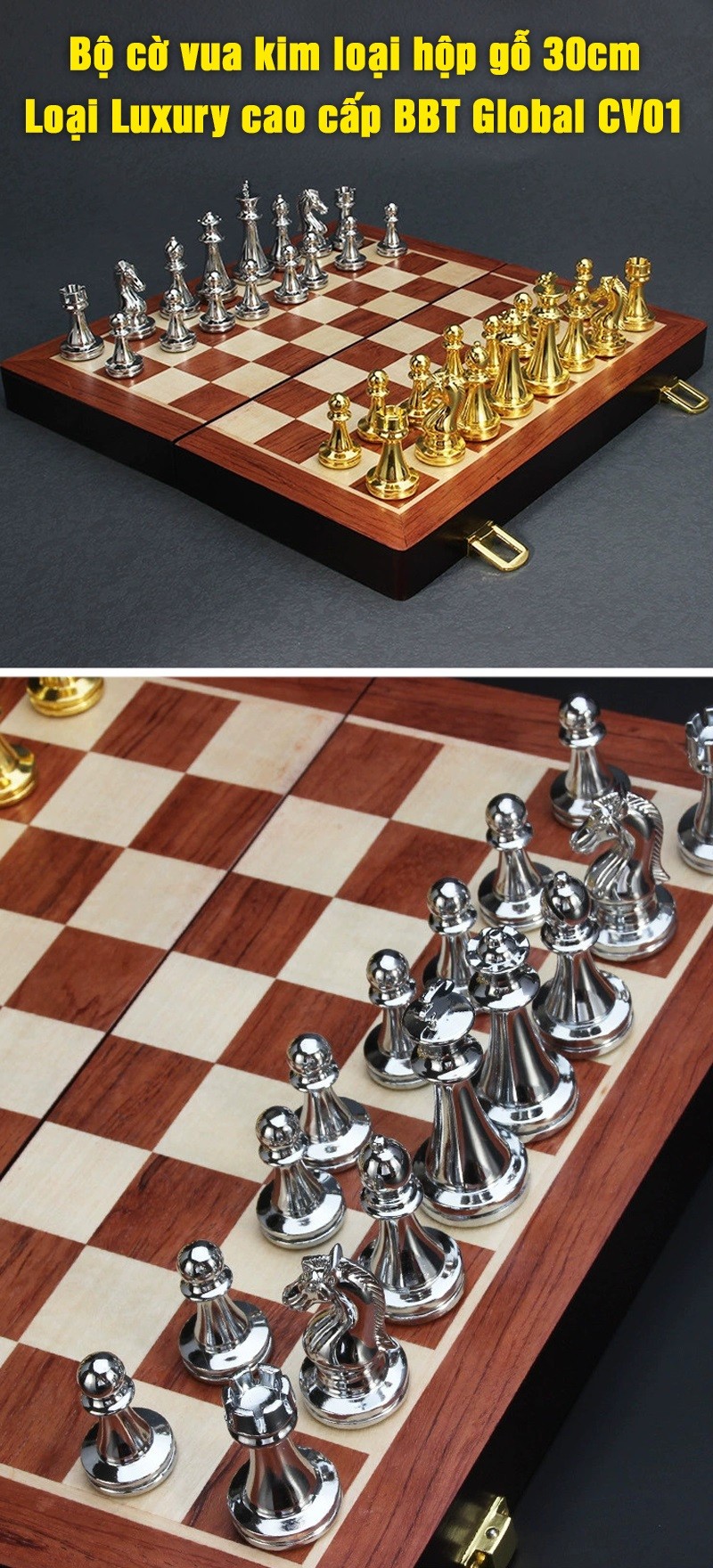 - Quân cờ hợp kim sắc nét, tỉ mỉ, cầm chắc tay