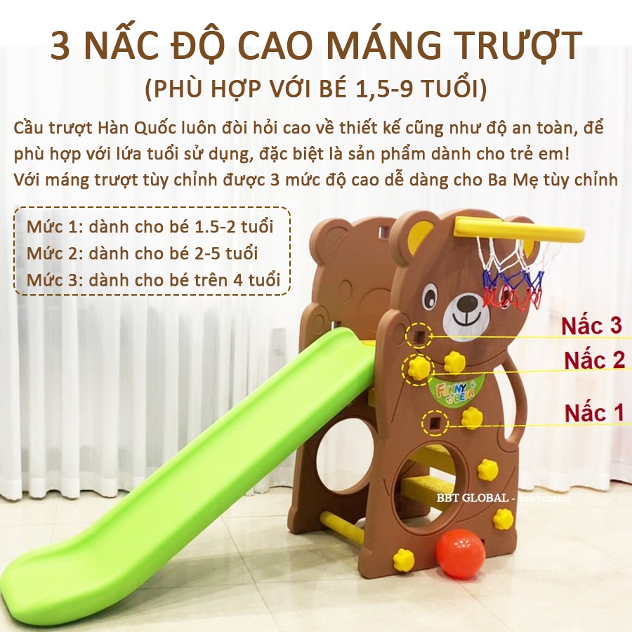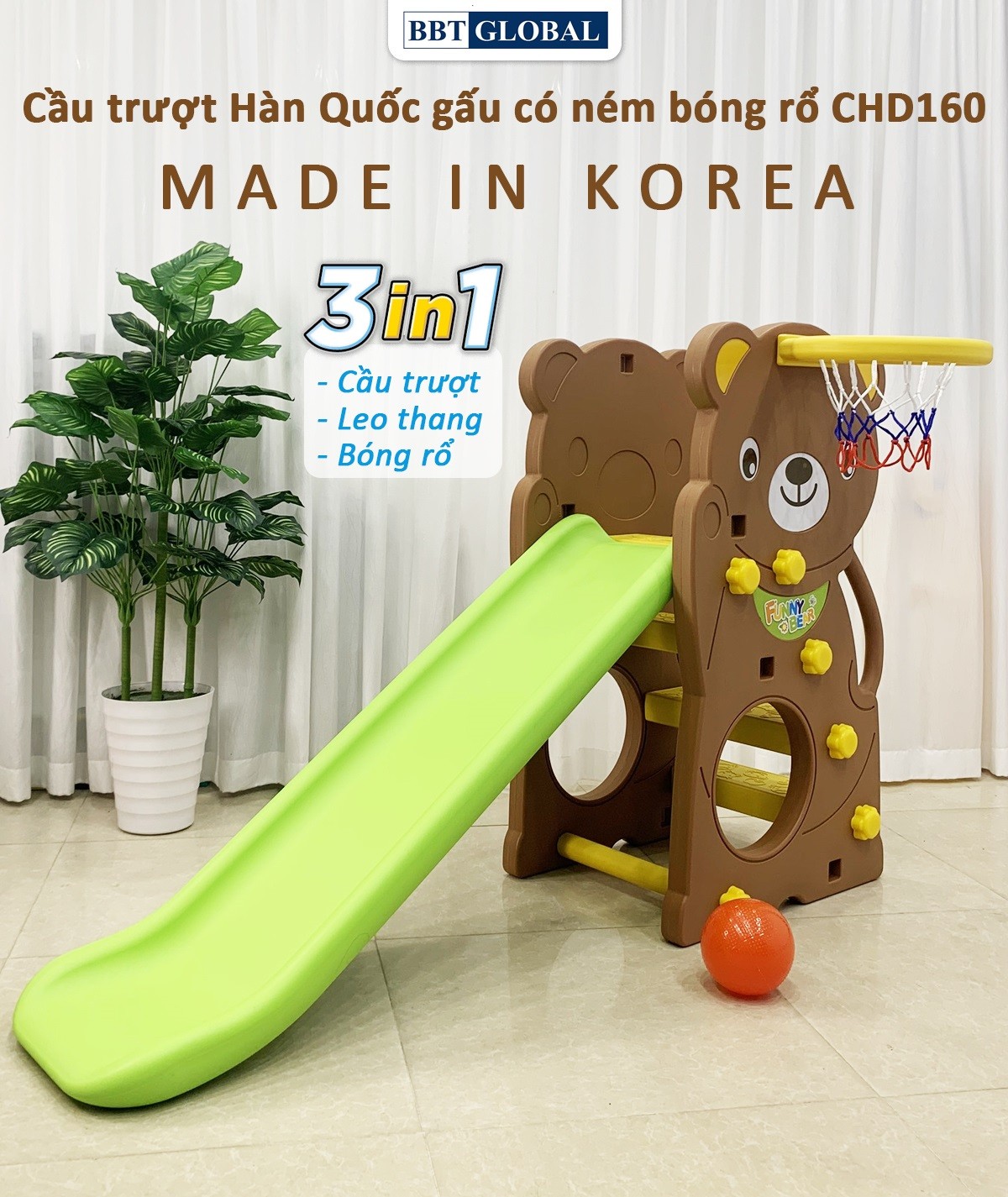 Cầu trượt Hàn Quốc gấu có ném bóng rổ CHD160
