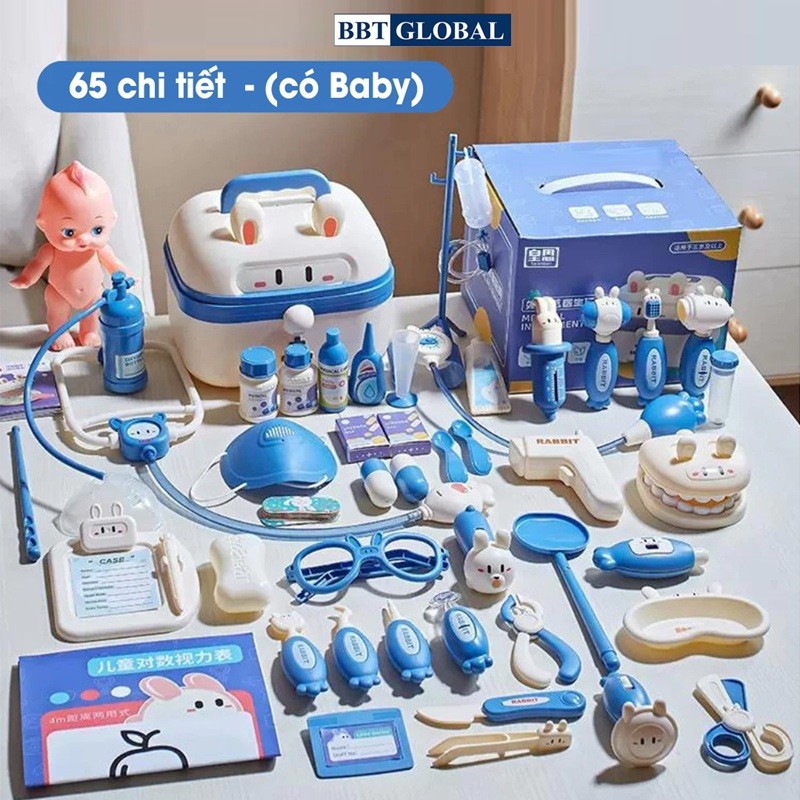 Hộp đồ chơi bác sĩ tai thỏ có quai xách 65 chi tiết là mẫu mới nhất và đầy đủ nhất 2024 được nhiều Ba Mẹ lựa chọn vì có đầy đủ các thiết bị và dụng cụ y tế mô phỏng như thật nhất