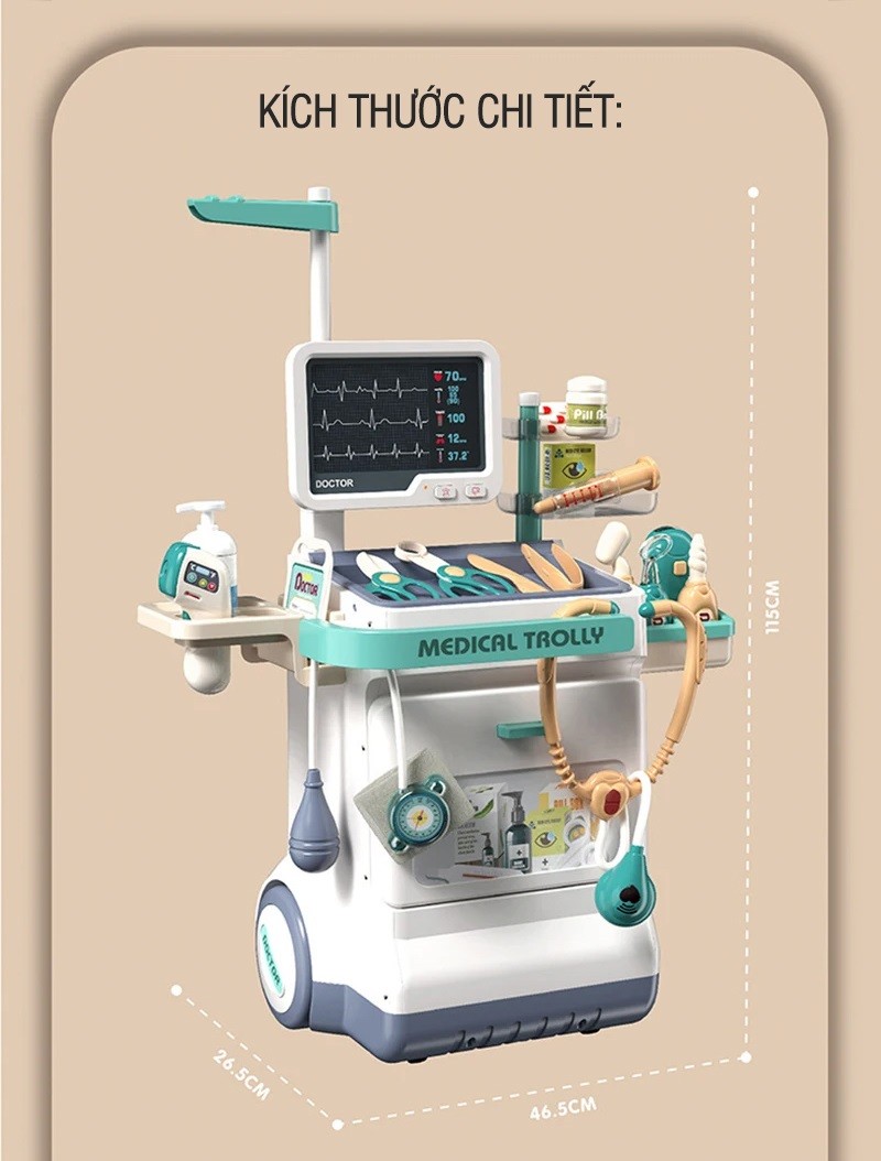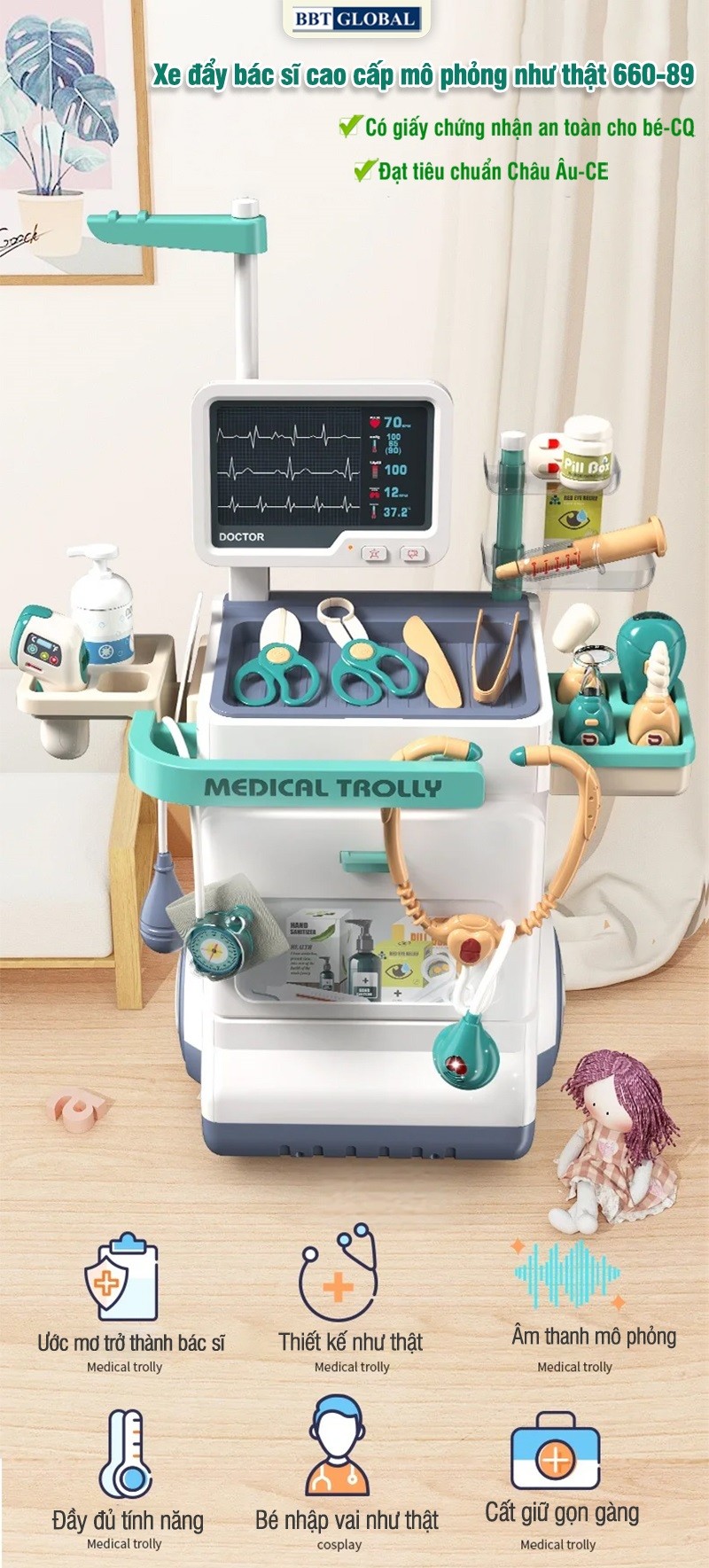 Đồ chơi bác sĩ xe đẩy cao cấp CỠ LỚN mô phỏng như thật 660-89
