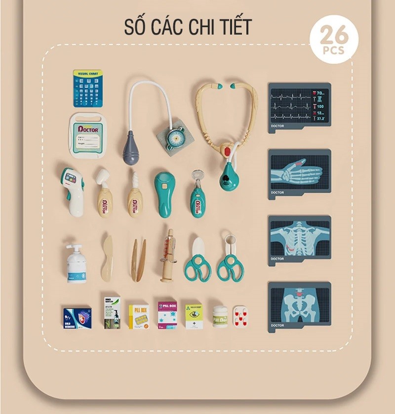 - Gồm xe đẩy bác sĩ cùng 26 chi tiết cỡ lớn