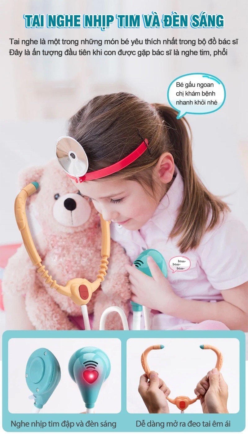 - Ống nghe bé nào cũng mê, có đèn và nghe nhịp tim như thật