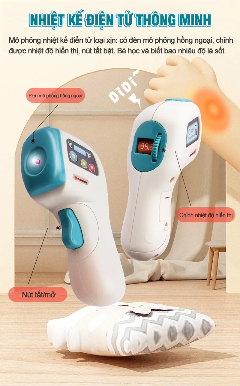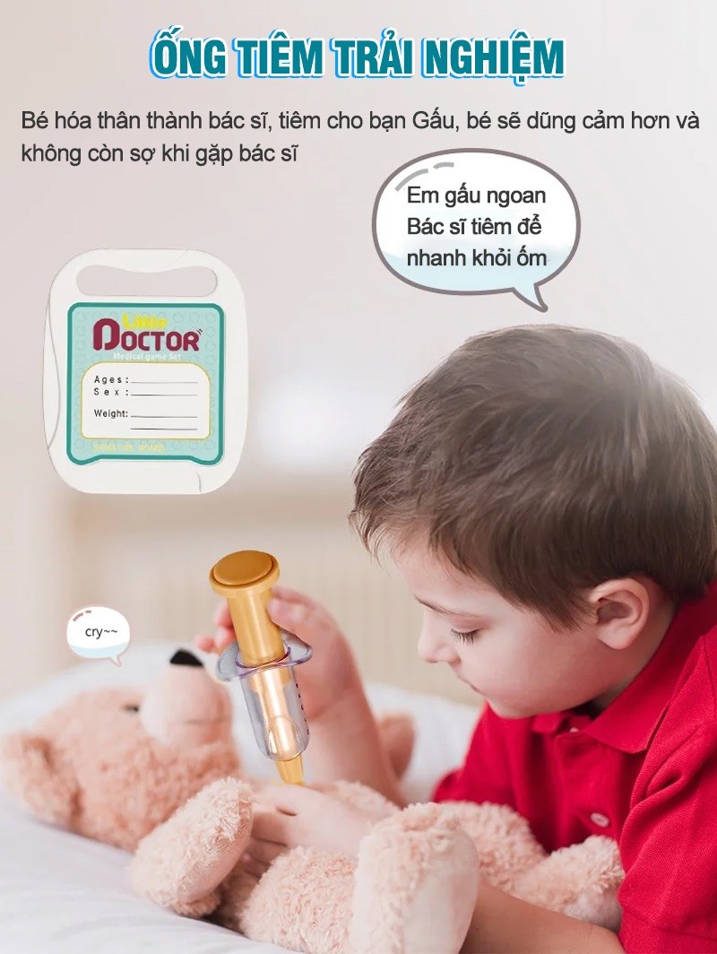 - Ống tiêm cho bé tiêm như thật, con sẽ không sợ mỗi khi đi gặp bác sĩ