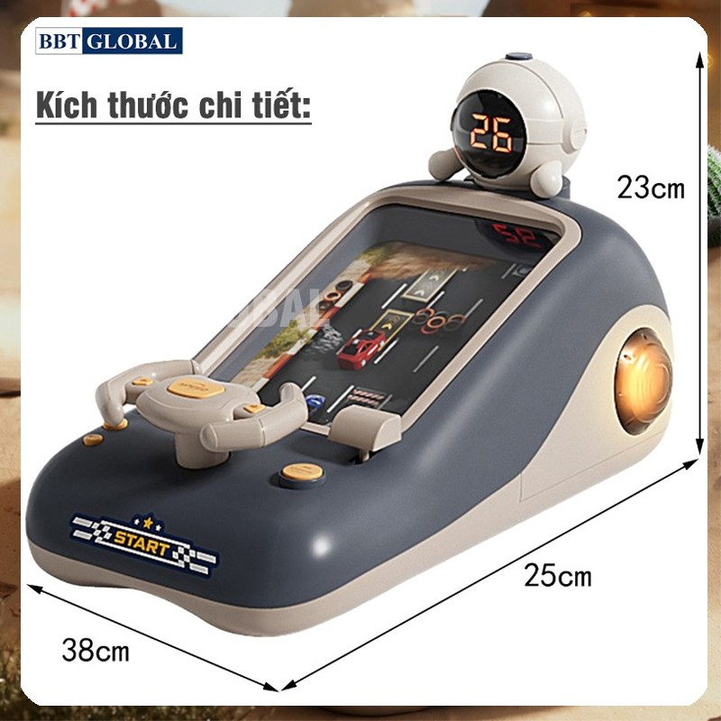 - Đồ chơi đua xe ô tô có màn hình chuyển động, vô lăng điều khiển như thật kèm hiệu ứng âm thanh, cảnh báo và có đồng hồ hẹn giờ