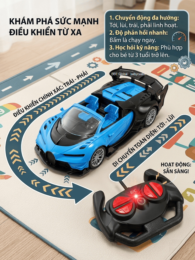 Điểm nhấn đặc biệt của mô hình xe đua BBT Global chính là khả năng điều khiển từ xa. Bạn có thể tự tay điều khiển chiếc xe lướt trên mặt phẳng, cảm nhận tốc độ và sự linh hoạt của nó.