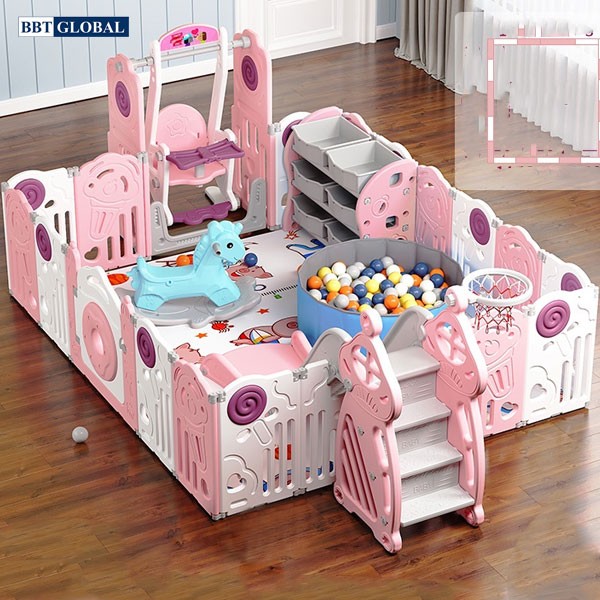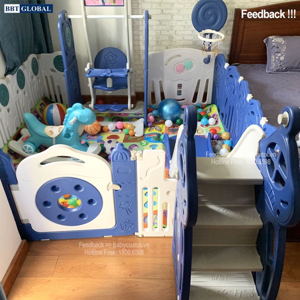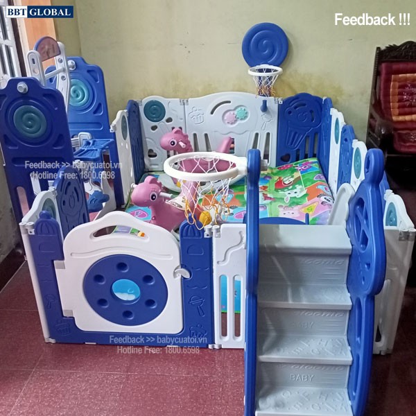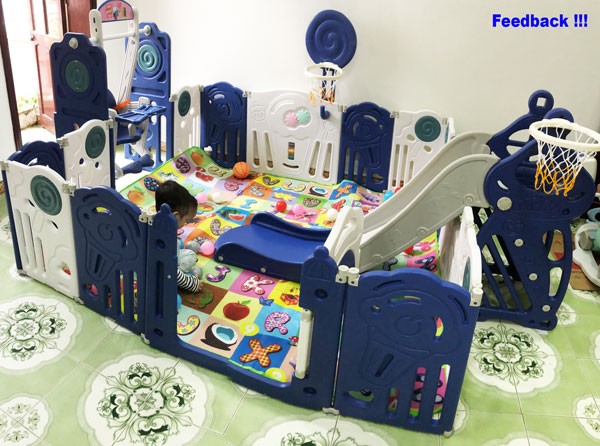 Combo cầu trượt, quây cũi này khá rộng rãi và chắc chắn để bé có thể vui vẻ vận động