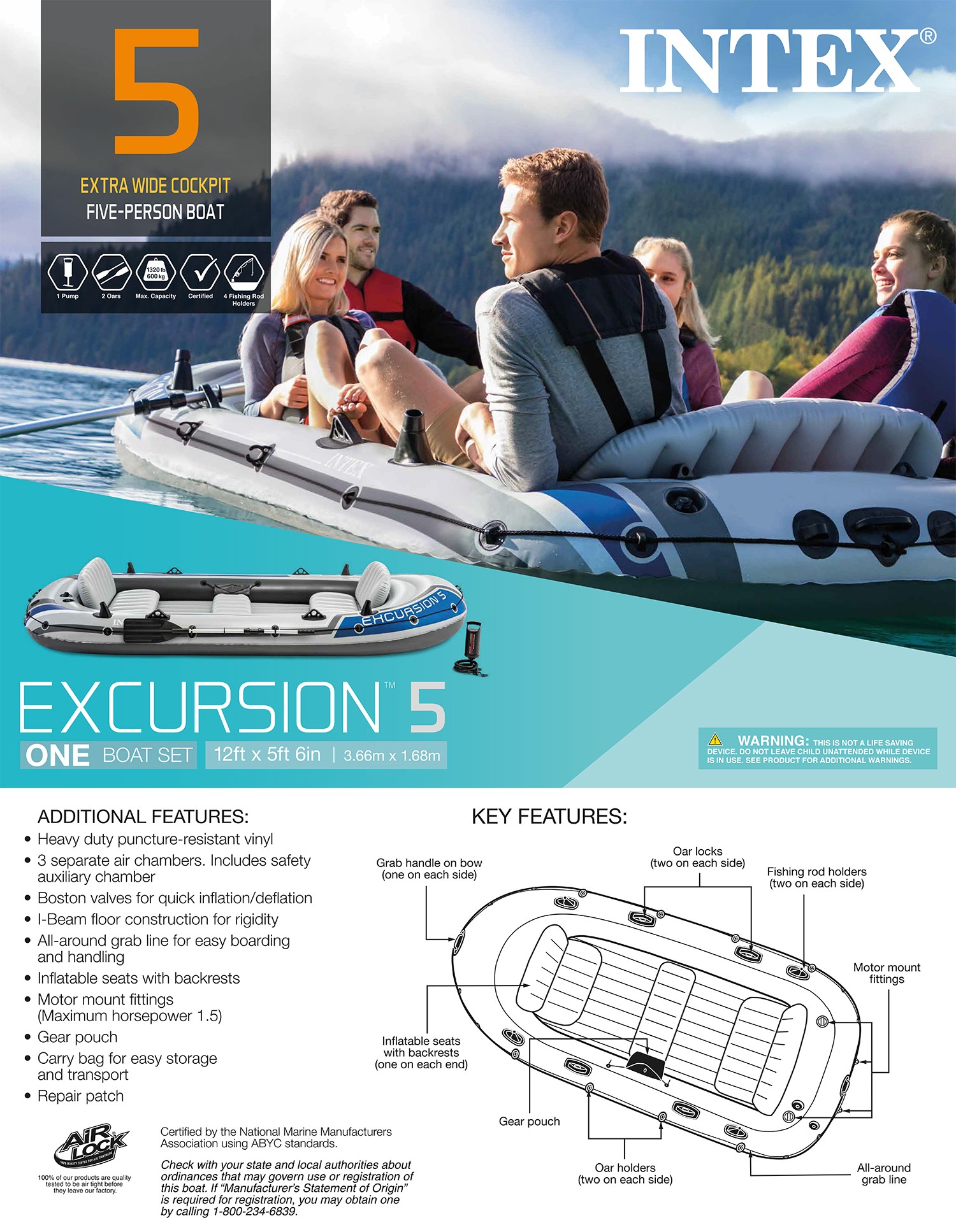 Thuyền bơm hơi INTEX du lịch EXCURSION 5 người 68325