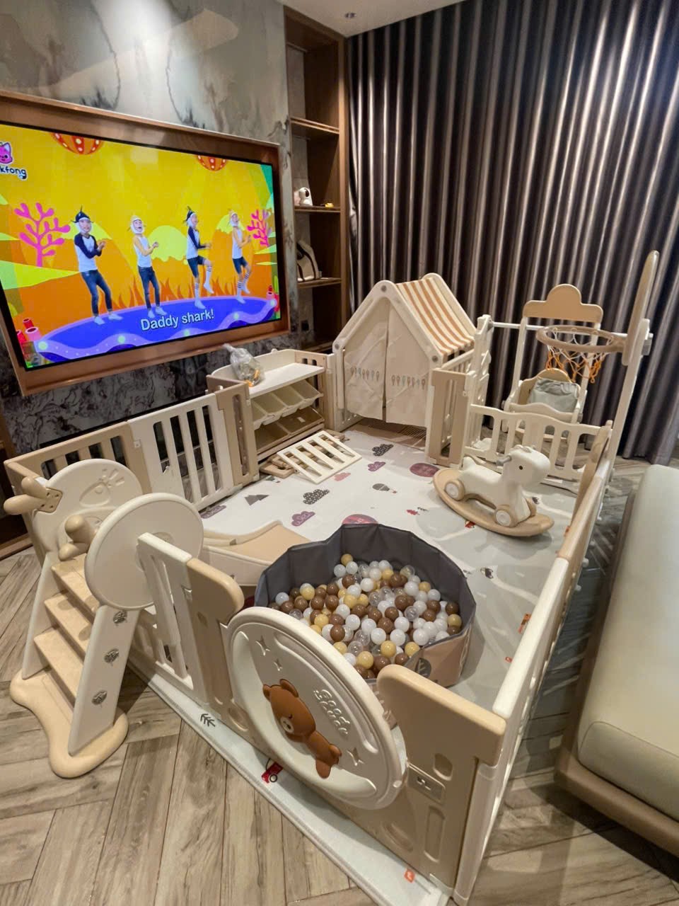 Đối với gia đình có trẻ nhỏ, giải pháp tối ưu nhất là thiết lập một không gian chơi an toàn, giới hạn bằng quây cũi gập gọn.
