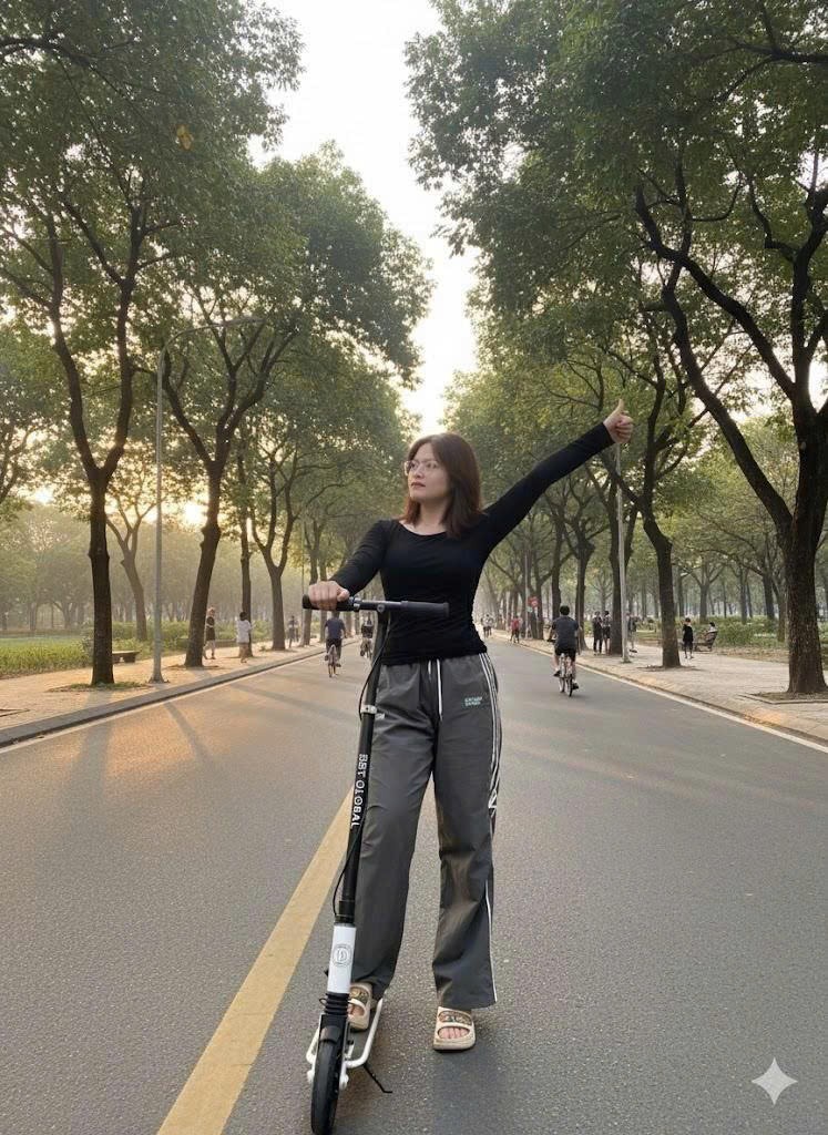 Không phải bé nào cũng sẵn sàng với xe máy hay ô tô điện — với bé từ khoảng 6 tuổi trở lên (và cả người lớn), scooter là lựa chọn linh hoạt, tiện lợi. BBT Global KM985 có cấu tạo chắc chắn, bánh PU bền, tay phanh + phanh chân giúp kiểm soát tốc độ, tải trọng lên tới 150 kg, cao tay lái có thể điều chỉnh — nghĩa là scooter đủ “chất” để dùng lâu dài.