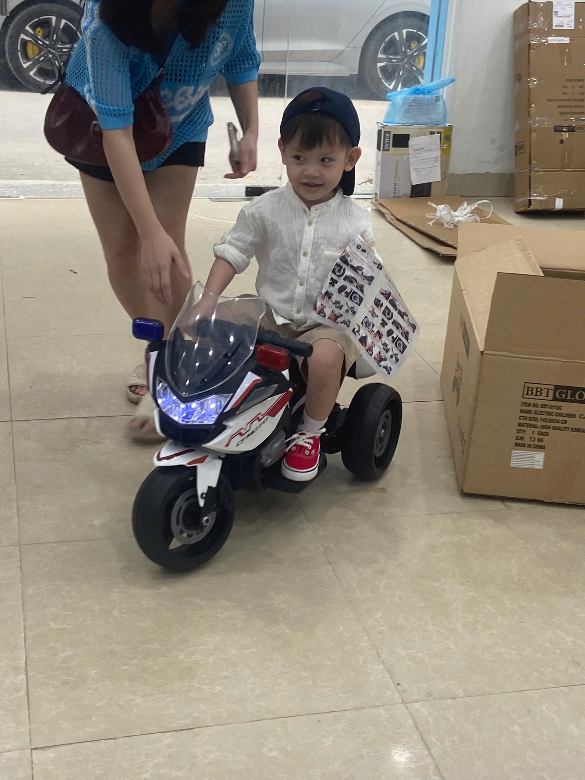 Nếu bé nhà bạn thích “xe máy”, mê dáng vẻ “ngầu”, hoặc mong muốn thử trải nghiệm “mô tô mini” — BBT-8118C là lựa chọn “ăn điểm” dịp Noel. Xe dùng cho bé từ ~1–5 tuổi, tải trọng ~35 kg, thiết kế 3 bánh an toàn, có còi hú + đèn xanh đỏ như xe cảnh sát thật.