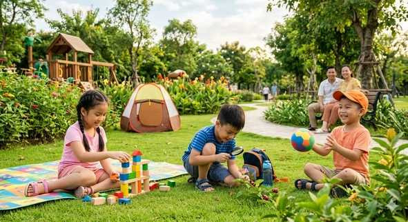Các hoạt động vui chơi ngoài trời hoặc tương tác vận động giúp bé: