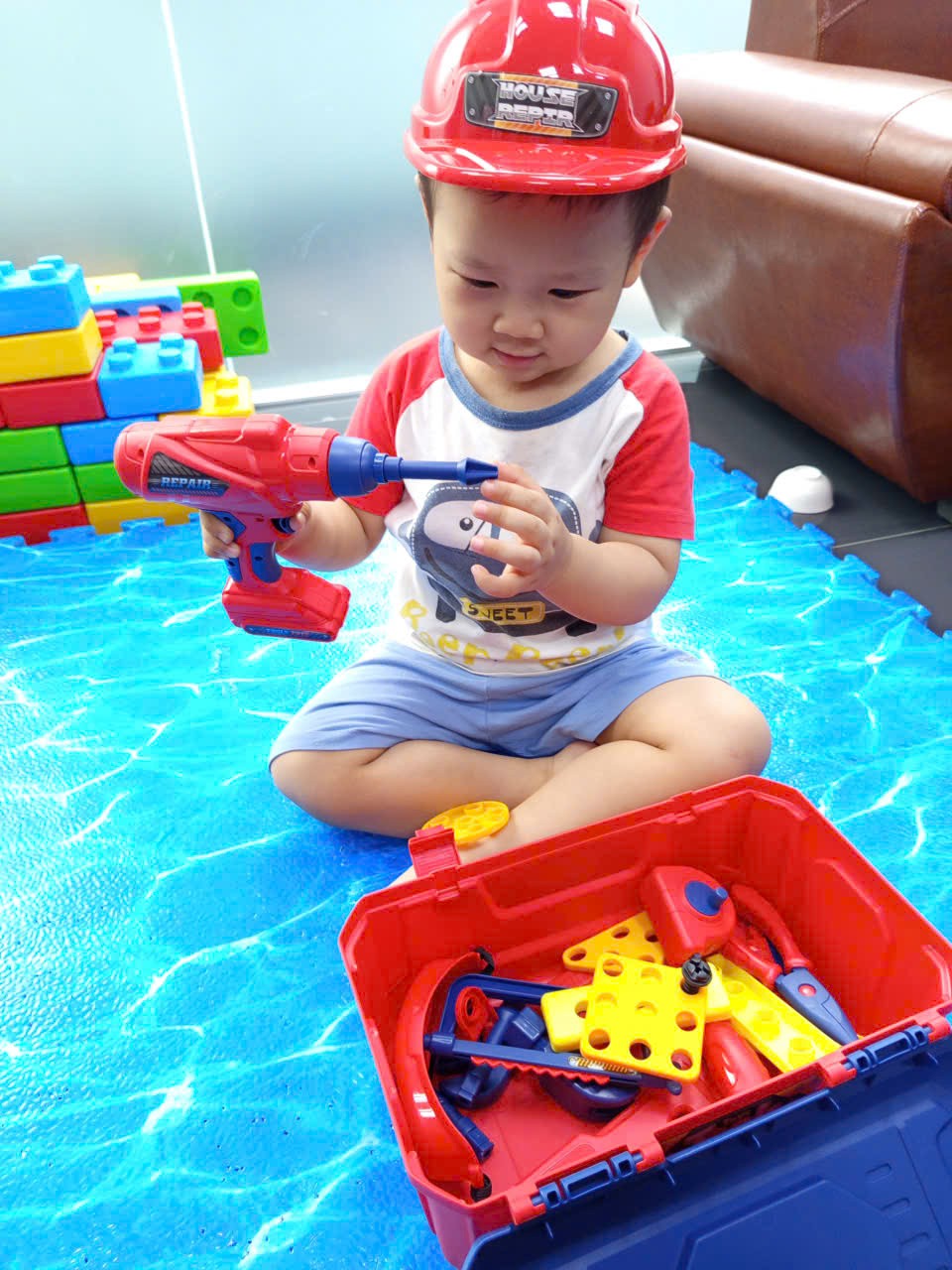 Với thiết kế hộp đồ nghề nhỏ gọn, mô phỏng đầy đủ các chi tiết như búa, tua-vít, cờ-lê…, bé có thể tha hồ lắp ráp, tháo dỡ và sáng tạo.