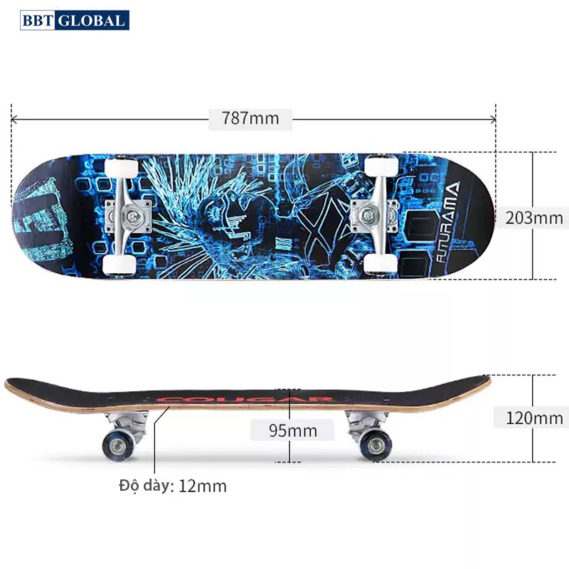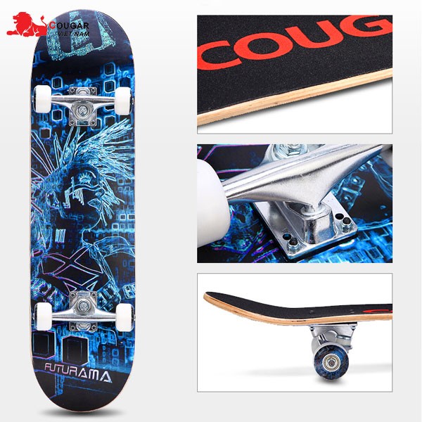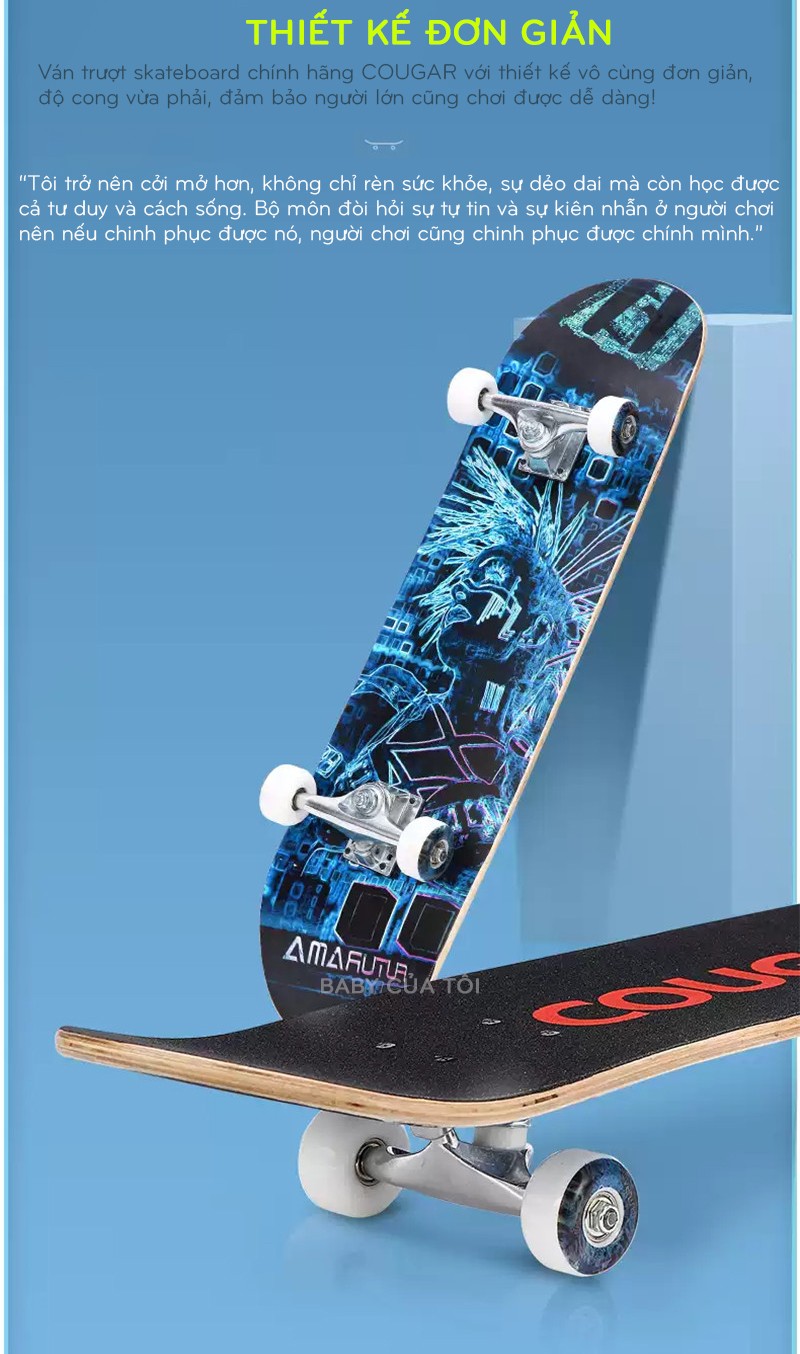 - Ván trượt Cougar thiết kế 9 lớp cao cấp, gỗ siêu bền và nhẹ, chống nước tốt, bộ bền cao