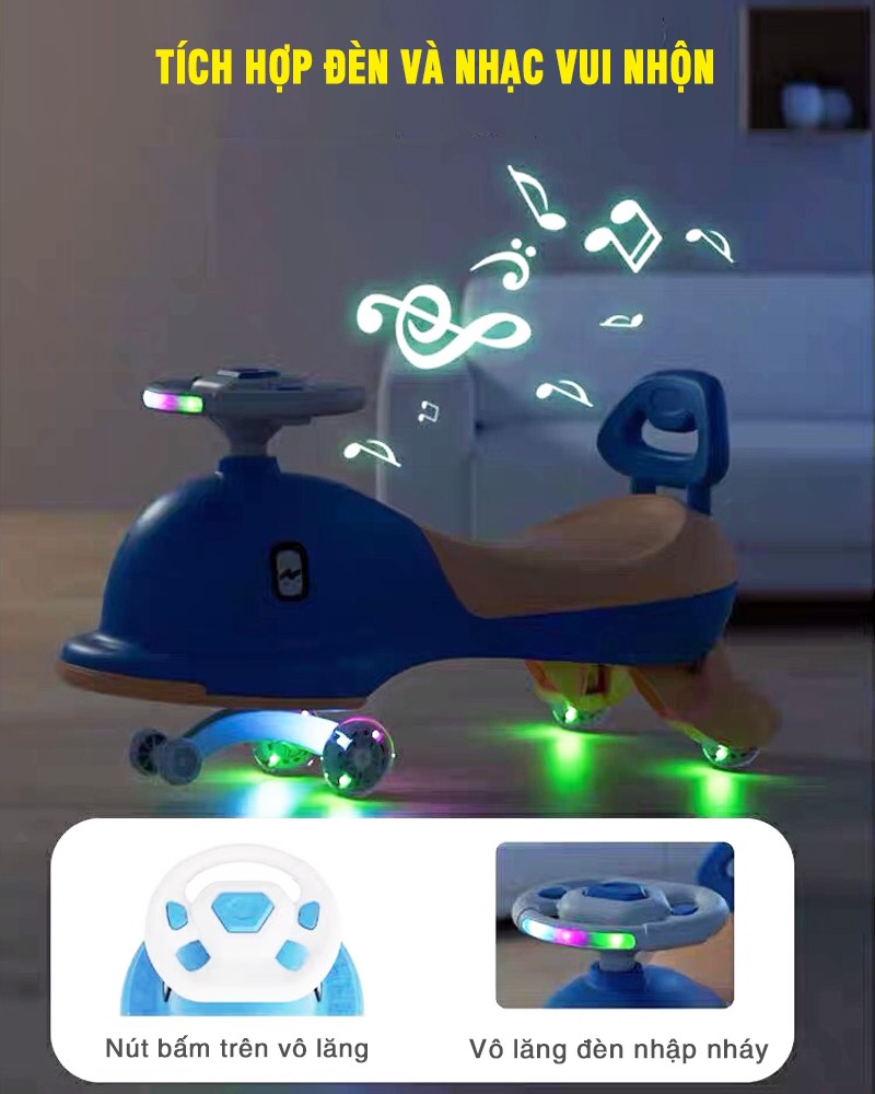 - Tính năng: Xe tích hợp đèn và nhạc vui nhộn