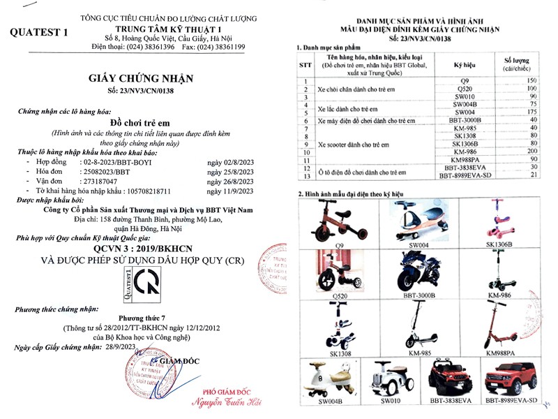 - Có chứng nhận chất lượng an toàn cho trẻ - CQ