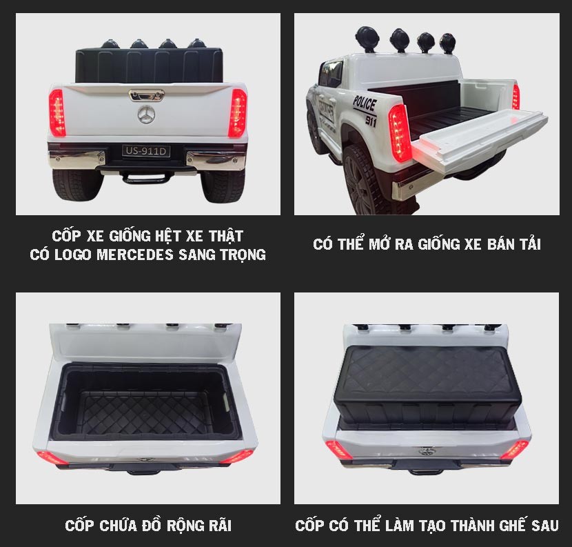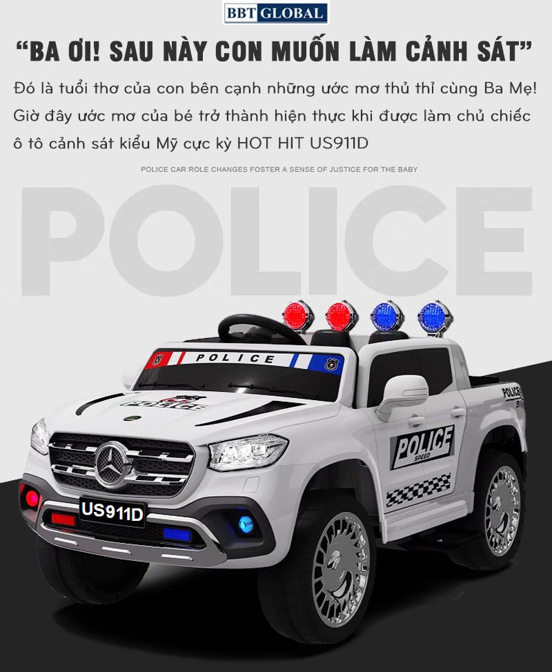 Xe ô tô điện cảnh sát cho bé cỡ lớn nhất US911D (hàng loại 1)