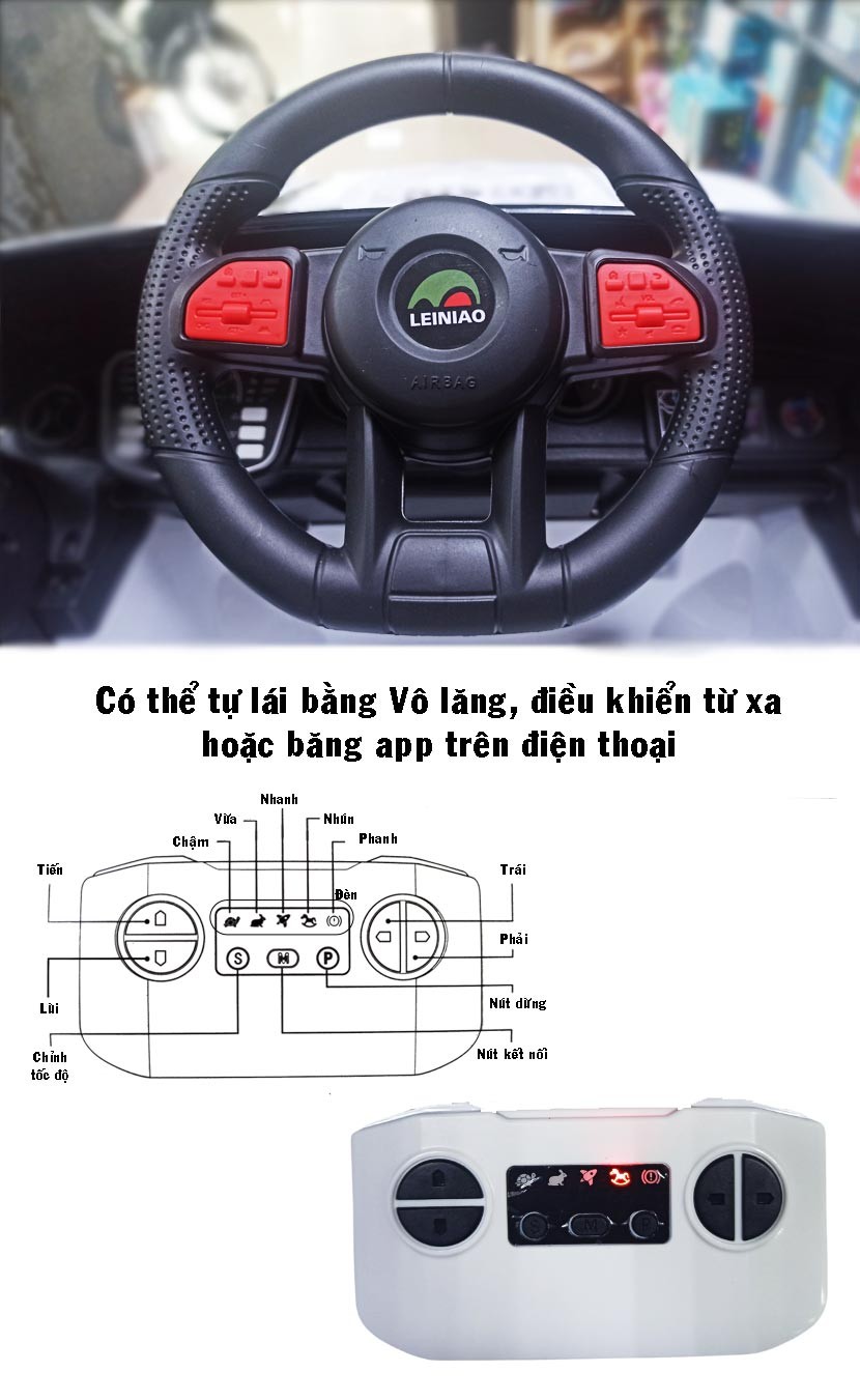 ✔ Tính năng: 2 chế độ lái; Nghe nhạc MP3, cổng cắm USB, kết nối Bluetooth