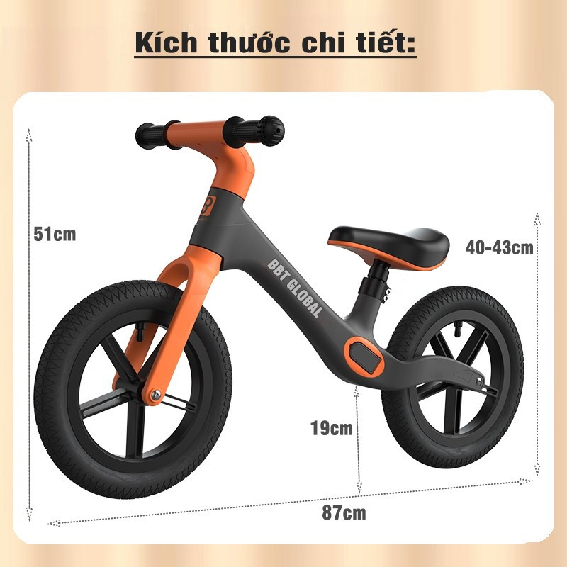 ✔ Thương hiệu: BBT GLOBAL ✔ Dành cho bé 2-5t ✔ Kích thước: Kích thước: dài 87cm, cao 51cm, yên ngồi cao 40-50cm (tùy chỉnh) ✔ Tải trọng tới 50kg ✔ Chất liệu: nhựa nguyên sinh an toàn, dẻo dai, chịu lực tốt ✔ Vành bánh xe mô phỏng vành đúc kiểu dáng thể thao năng động ✔ Yên ngồi da cao cấp, dày dặn, êm ái, chỉnh được độ cao ✔ Có chỗ để chân cho bé co chân lên khi di chuyển, không bị mỏi chân ✔ Tay cầm bọc cao su êm ái, có gờ chống trượt ✔ Bánh đặc siêu bền, giảm xoóc hiệu quả ✔ Vòng bi cao cấp, di chuyển mượt và nhẹ ✔ Sản xuất theo tiêu chuẩn xuất khẩu Châu ÂU - CE ✔ Đã qua kiểm định chất lượng an toàn cho bé - CQ ✔ Bảo hành 12 tháng