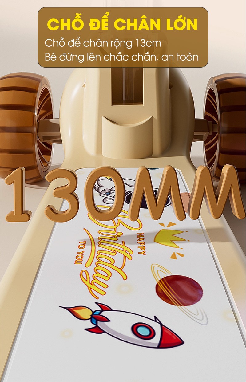 Bánh xe có đèn phát sáng khi di chuyển cho bé thích thú hơn, nổi bật hơn khi bé chơi lúc tối.