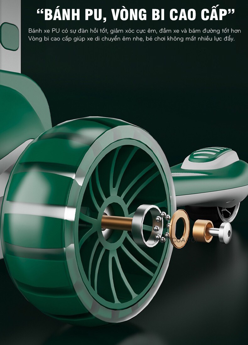 - Thiết kế 3 bánh cân xứng, chịu lực tốt và giữ được cân bằng cho xe