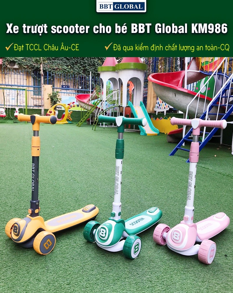 Xe trượt scooter cho bé BBT GLOBAL KM986 đã qua kiểm định chất lượng, đảm bảo an toàn cho trẻ, được nhiều Ba Mẹ tin tưởng và lựa chọn